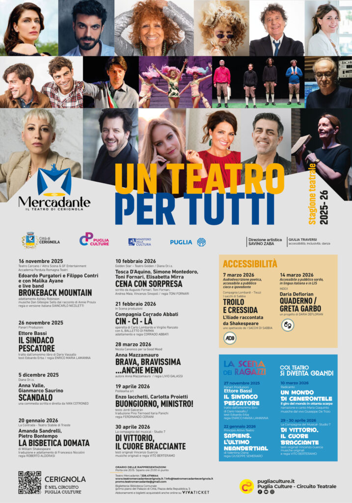 A completare il cartellone, torna anche quest’anno la rassegna “La Scena dei Ragazzi 2025-2026”, pensata per le nuove generazioni e per le scuole di ogni ordine e grado. Un progetto educativo e coinvolgente che unisce teatro, memoria e fantasia, offrendo ai più giovani spettacoli di qualità capaci di stimolare curiosità e riflessione.